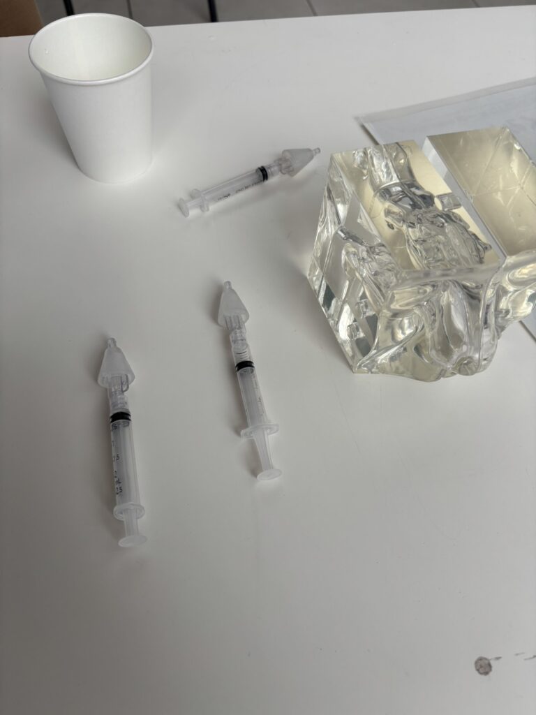 水を入れて点鼻の様子をデモンストレーションしていただきました。