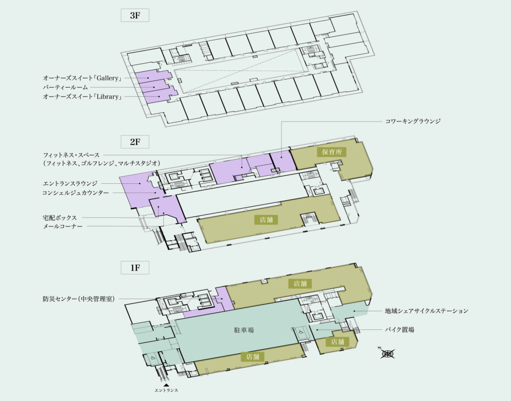 - 総戸数:491戸 (販売住戸481戸、募集対象外10戸、他店舗7区画、保育所1区画)