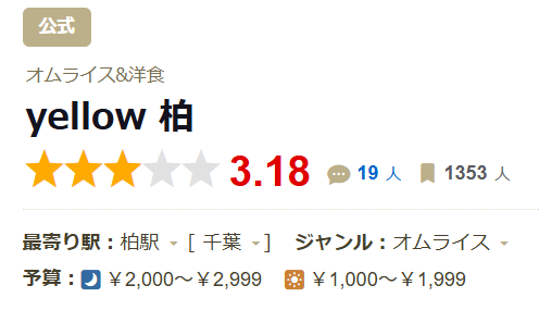 ちなみ、食べログの評価では★3.18(yellow 柏、記事編集時)でした。