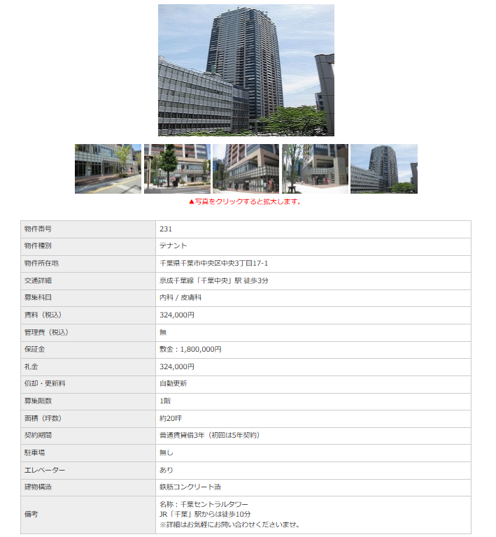 賃料は、医院開業物件センターの過去の募集データより、324,000円/20坪(=1.6万円/坪)だったことが分かります。これ、大きさ的には上でいうテナントBでしょうかね。