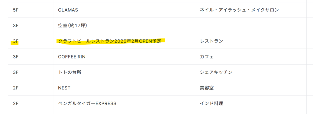 ウェストリオ2を管理してる「丸紅リアルエステートマネジメント株式会社」さんのテナント情報も更新されていました。はやい。