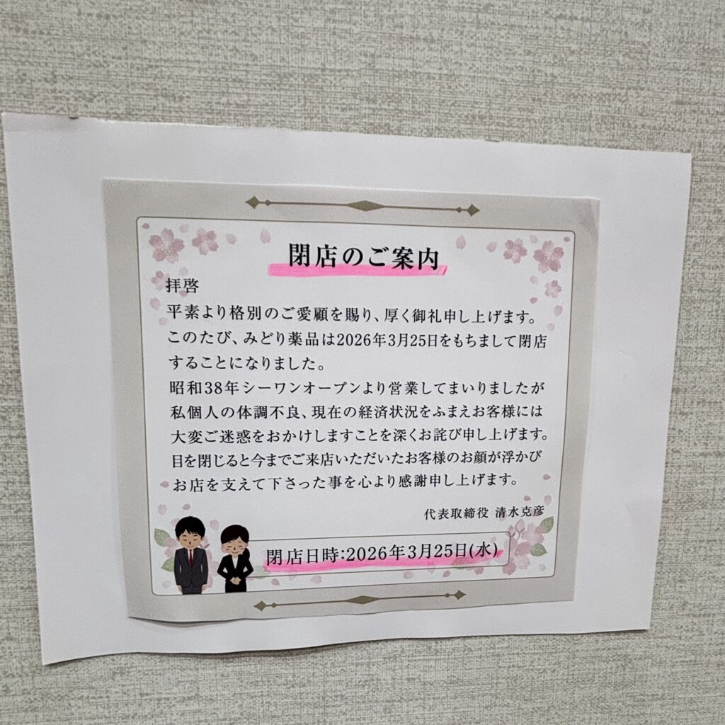 みどり薬品|2026年3月25日*閉店