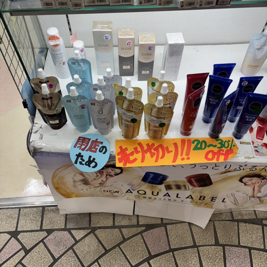 | 「みどり薬品」 | ファッションストリート (靴屋「AcureZ」と買取ショップ「リサイクルキング」の間) | 2026年3月25日* (※現地が閉店セール中) |