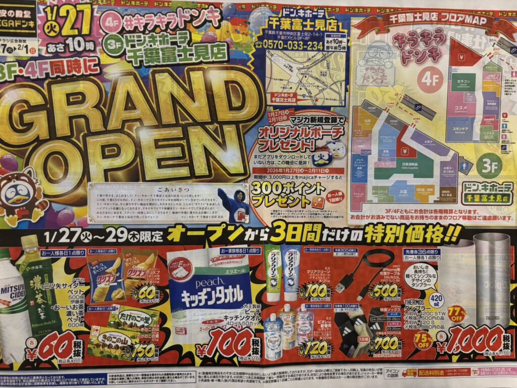 今回は、ドンキ千葉富士見店のオープン初日1月27日(火)の様子をご紹介します。