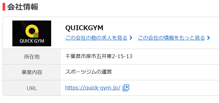 ちなみに、運営会社は千葉県市原市「株式会社QUICK GYM」というところ。