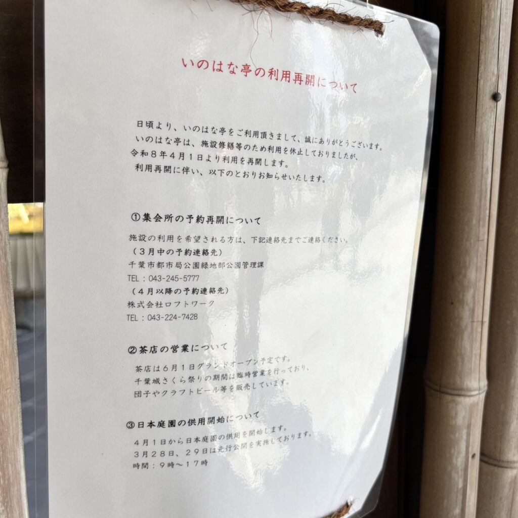 2026年4月再開予定ですが、千葉城さくら祭りの間は先行オープン?してましたので、見てきました。