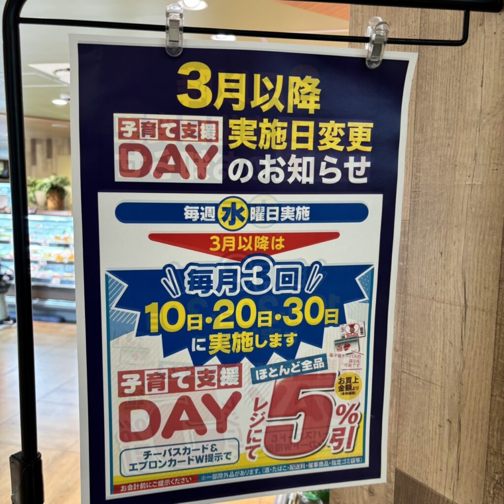 「子育て支援DAY」はリブレ京成の千葉県エリア店舗の企画のため、その他千葉県内の店舗もこのように変更されるものと思われます。