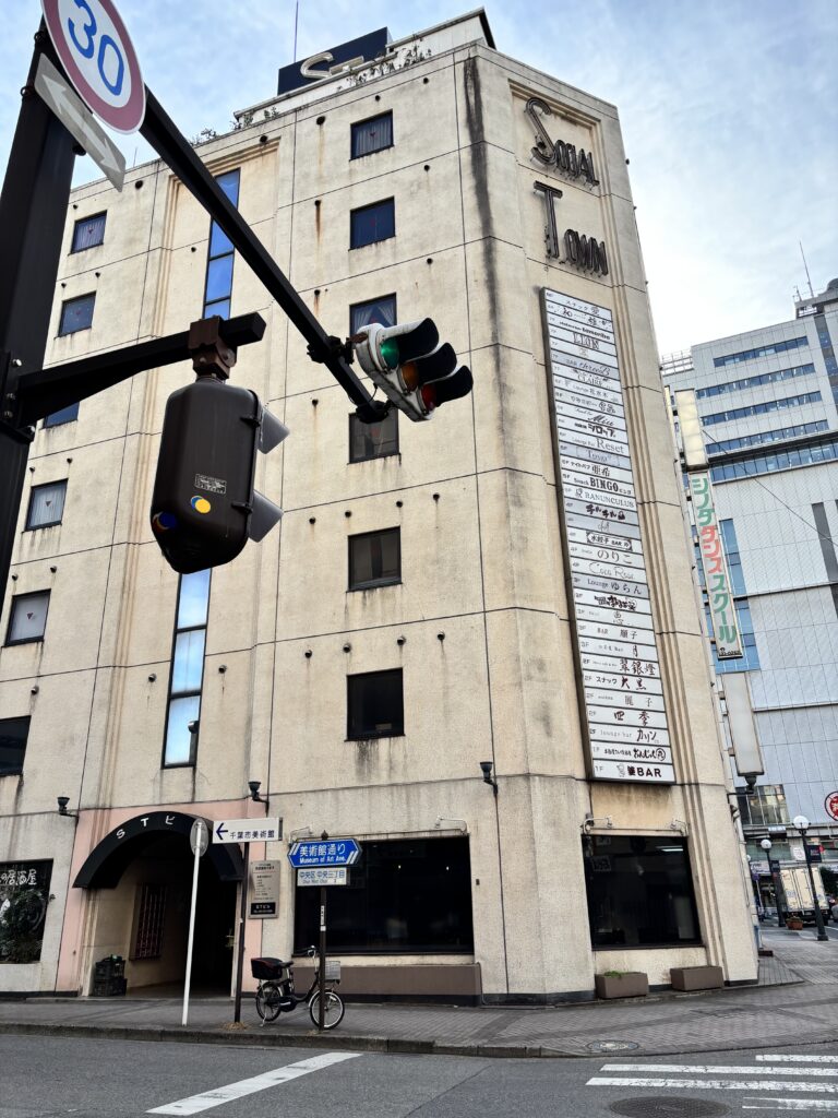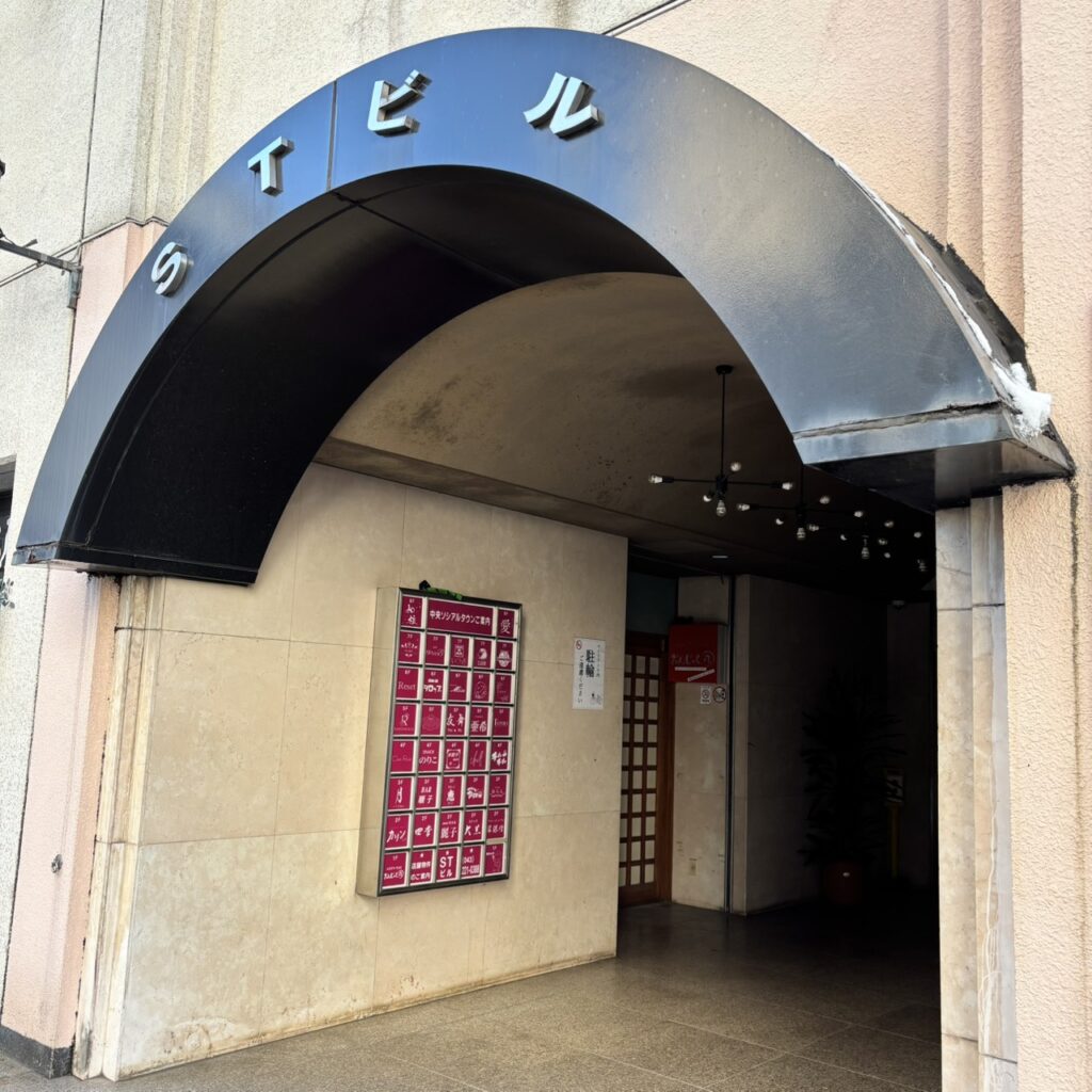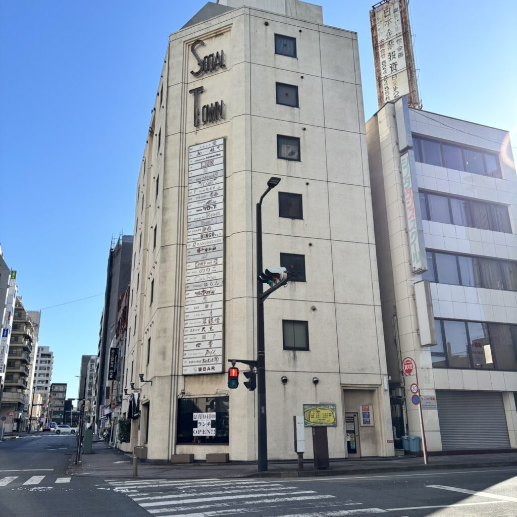 1985年竣工の以下のような外観の味のあるビルでして、スナックやバー等が多数入居しているようです。