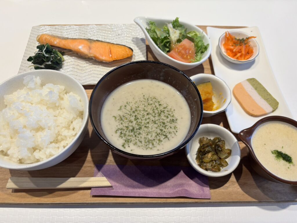 ジャパニーズ朝食っぽい「季節の日替わり定食(鮭の塩焼き)をセレクト。