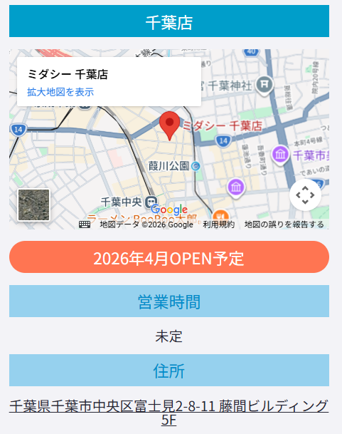 公式サイトを確認したところ、千葉店は2026年4月オープン予定とのことです。