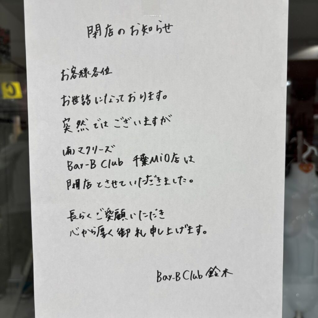 キャバ系のアパレルショップ「Bay B Club 千葉Mio店」さんもこの時期までには閉店しておられました。