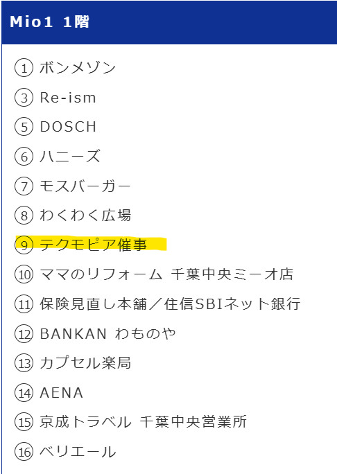 - 場所:千葉中央ショッピングセンターMio(ミーオ)