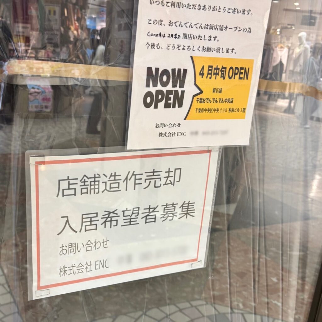 その後「おでんでん 千葉本店」として、旧「おでんでん 千葉中央店」の入ってたビルのお隣に2026年4月18日オープンすることが分かりました。