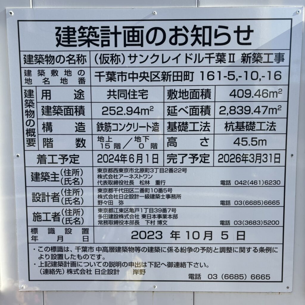 建築計画のお知らせによると、アドレス的には”千葉市中央区3丁目15-13”。