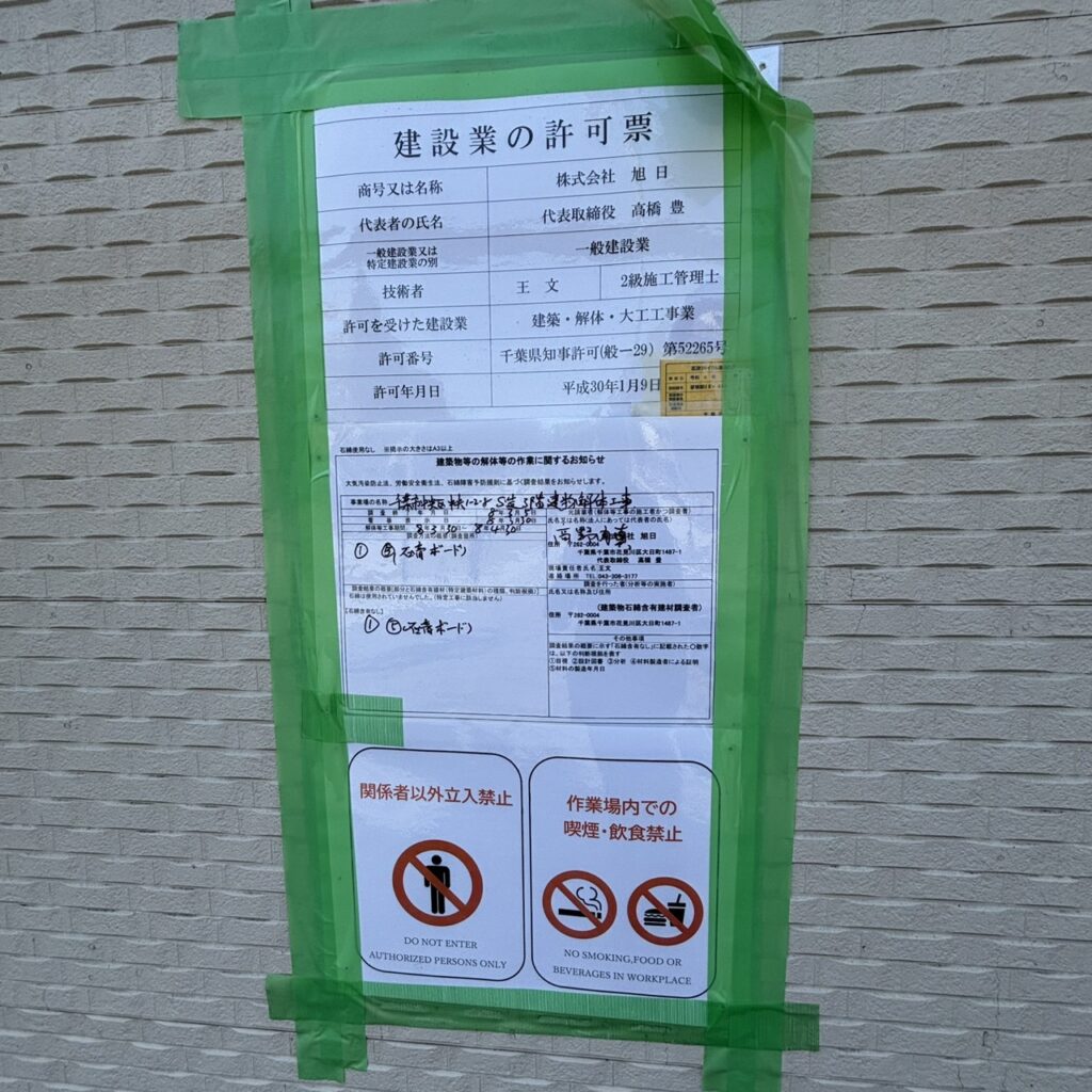 お知らせの掲示を見ると、解体等工事期間は3月30日~4月30日の予定となっていました。