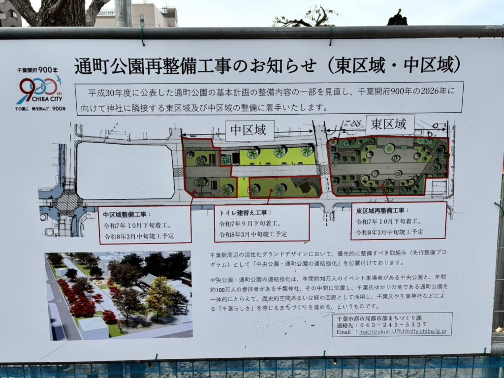 千葉市の中央公園・通町公園の連結強化に係る公園再整備事業の一部かと思われる本工事ですが、今後の通町公園の動きもウォッチしていきます。